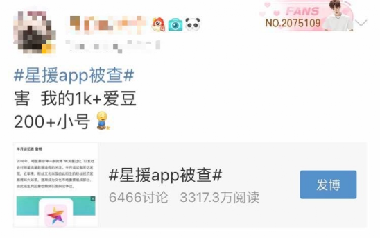 2019年6月,星援APP在公安部展开的「净网2019」中被查,仅半年就获利超800万,也是2018年蔡徐坤新歌视频1亿转发量的幕后「推手」。