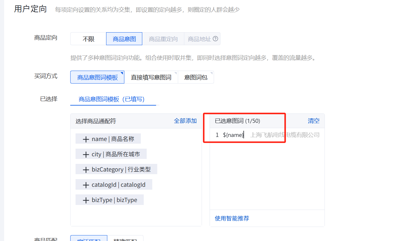意图词:仅根据历史搜索行为来识别意图。勾选过后,仅搜索过的人能看到广告。