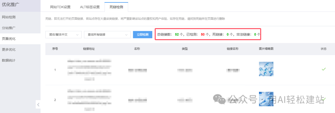 死链,即无法打开的页面链接,若站点存在大量该类链接,将严重影响该站点的重权和用户体验,如存在死链,可以快速检测后,删除处理。