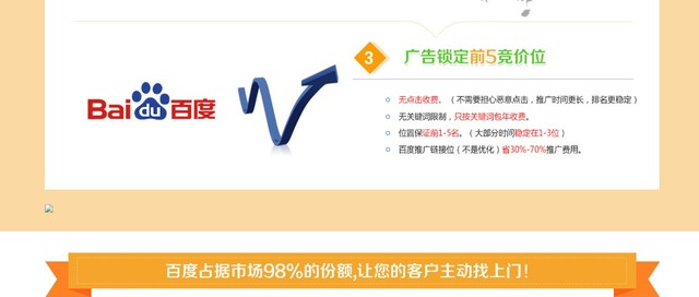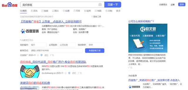 事实上,竞价排名作为一种营销推广手段已经形成一条较成熟的产业链。豹变通过百度搜索“竞价排名”,网页中显示前两条网站均为百度营销的网站入口,第3名营销推广网站则宣称“百度占据市场98%的份额”,这家营销推广网站客服人员对豹变表示,客户可以选择展现时间和广告投放区域,通过客户提供的关键词,对公司进行宣传,主要按照点击量进行收费。
