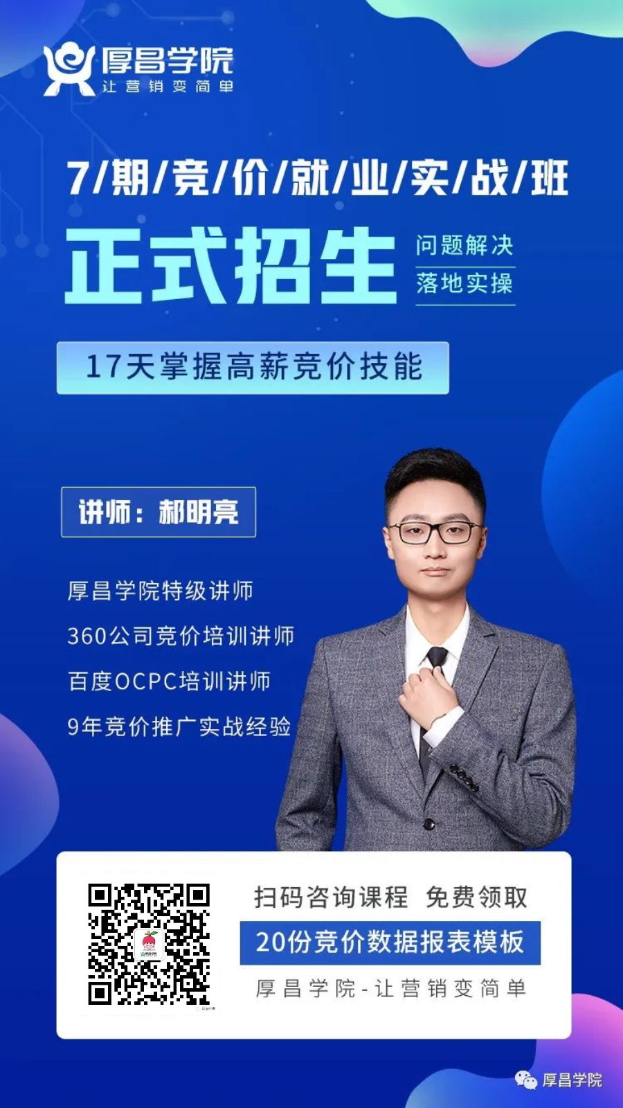 如果你担心二阶效果不稳定、成本飙升,或者当前cpc的效果还不稳定,想跑ocpc又不知道怎么操作的,我建议你可以跟着郝明亮老师的《竞价就业实战班》进行学习。