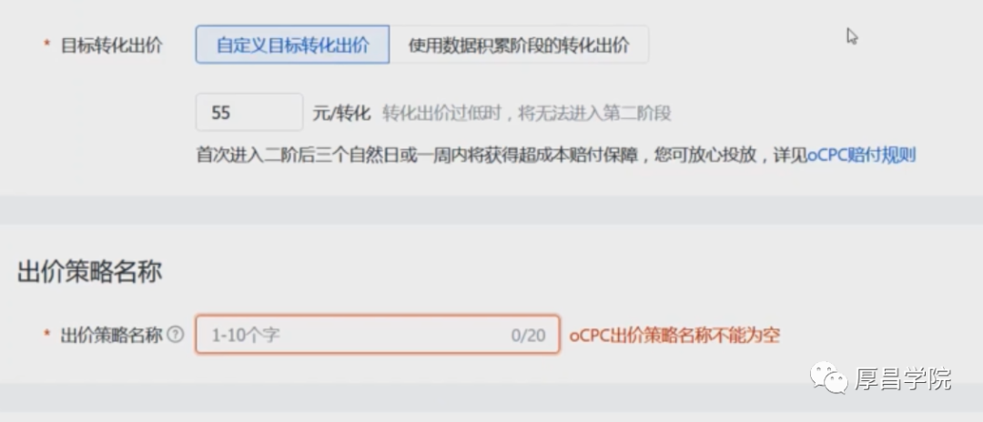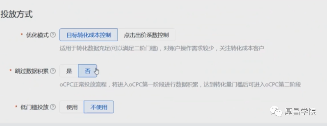 目标转化成本控制:这就是我们通俗理解的ocpc,设置一个成本,系统会按照设定的成本去拓量。