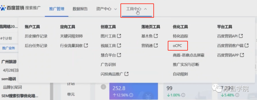 首先,进入到推广账户后台,进入【工具中心】选择【ocpc】