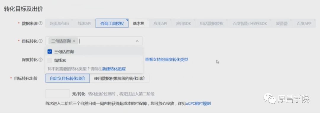 还有一个深度转化出价,就是可以在目标转化的基础上,选择更深度的转化目标。系统会在稳定转化成本的基础上,进一步稳定深度转化出价。