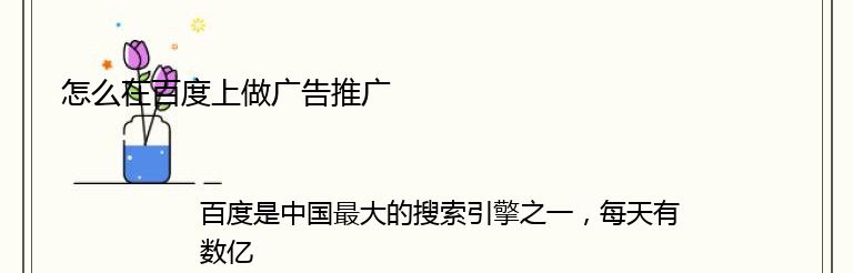 总之,在百度上做广告推广需要一定的技巧和经验。你需要不断地优化广告计划和广告素材,提高广告的转化率和ROI。希望这篇文章能够帮助你更好地在百度上做广告推广。