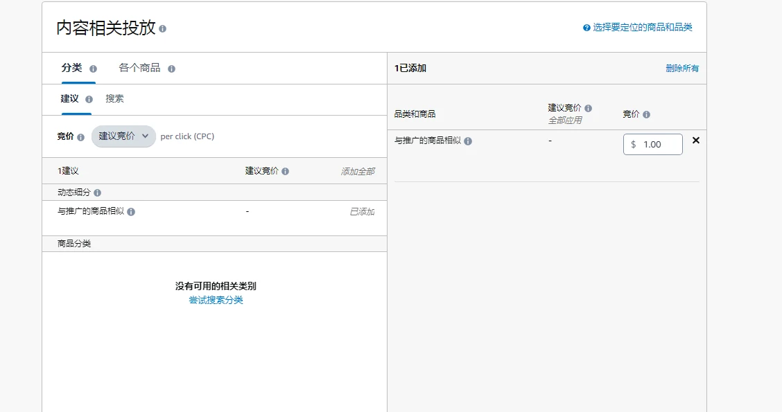 投放选择商品投放,受众投放效果差,很多产品不需要投到站外去,成本类型选择CPC,可控并且归因逻辑简单。
