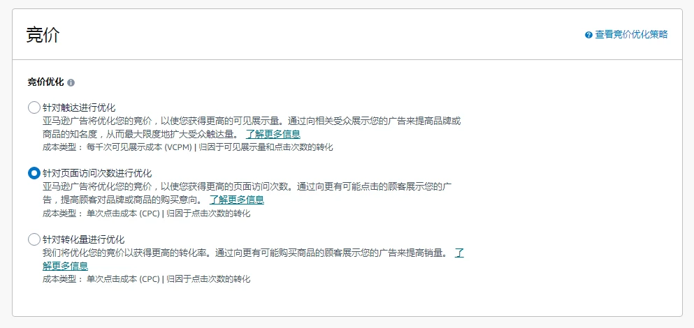 广告组请选择针对页面访问次数进行优化,其实这里就是针对点击进行优化,点击是所有广告出单的关键因素之一。所以针对这个点进行优化,你的流量会又大又准。目前很不建议选择千次展现量。VCPM出来的广告数据混乱,且归因逻辑复杂。很多自然订单都有可能被算进去VCPM的出单,最后你会发现,你当天的广告销售额比你今天一整天的所有销售额加起来都高。