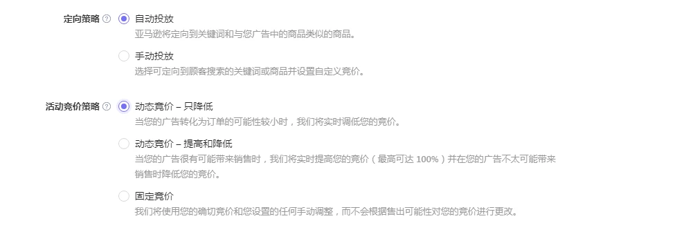 而竞价策略方面,我们可以选择只降低。出价方面,如果已经知道市场的区间,那么大概就是中下的出价就可以了。只要能有曝光点击产生就够了,然后随着你的需求再加大一点点。同时需要周期性否定掉不出单的词。这样子你的自动广告会不停的给你拉取新的关联流量。