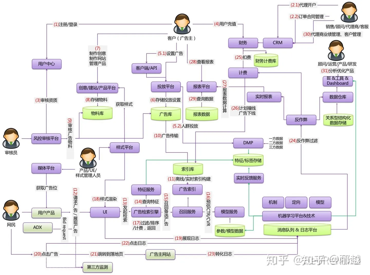 CRM是业务平台中非常复杂的系统,面向销售、代理商、客服,典型功能包括线索管理、合同管理、开户,客户管理,业绩管理、返点等,通过运营的手段,为广告平台赋能。