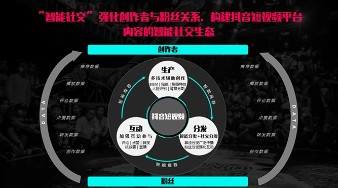 现在,其在全球范围内累积获取5亿+注册用户,平台每天生产超过 1500 万部 UGC 内容)。抖音这个平台可以用10个字来概括:年轻、魔性、新潮、技术、社交。抖音是以音乐为切入点,搭配舞蹈、跑酷、表演等内容的创意表达方式,为用户创造丰富多用的玩法,可以让用户轻松快速的创作独特有张力的短视频,并在抖音社区与众多用户互动。