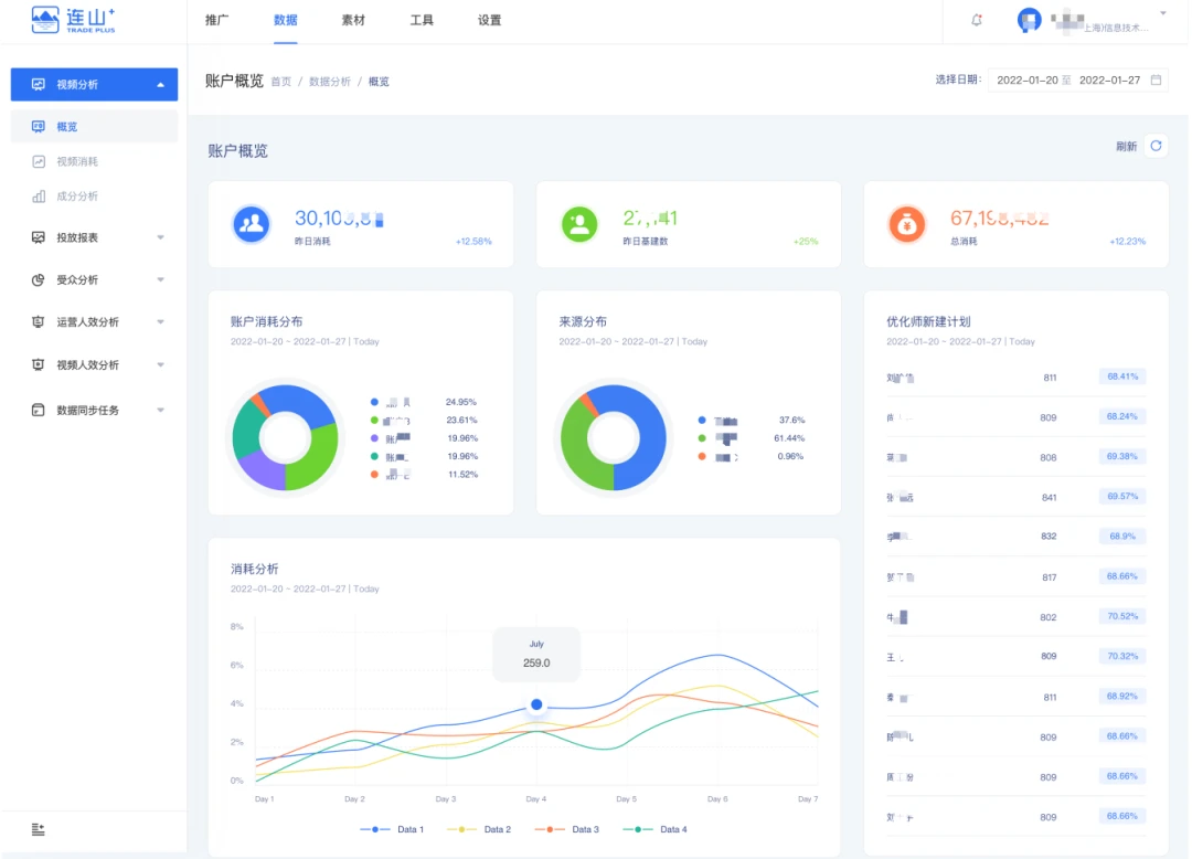 连山+Tradeplus是专注于短视频投放领域的,一站式跨平台程序化广告投放和数据管理平台,可以通过批量复制等策略,程序化搭建媒体广告计划,减少简单机械的重复劳动,大幅提升素材利用效率,并提供多维度洞察广告投放的效果数据,帮助客户或品牌实现更精益化的营销运营。