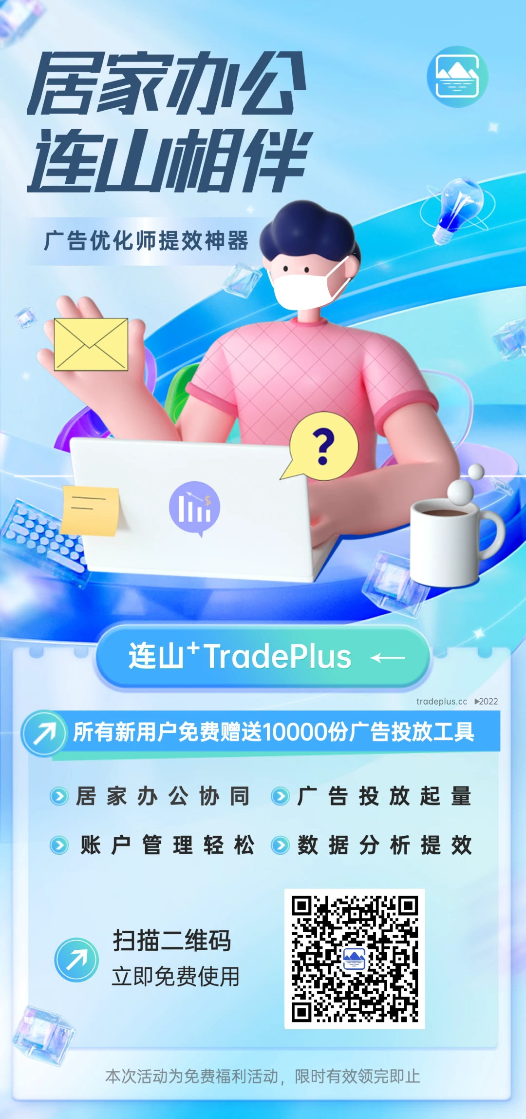 最近,很多优化师及运营团队都居家办公了,因此面向广告投放行业所有运营优化师,连山+免费提供给一站式跨平台程序化广告投放管理工具给大家使用,在当前疫情之下助力众多运营优化师,便捷地实现居家办公,提升运营效率。