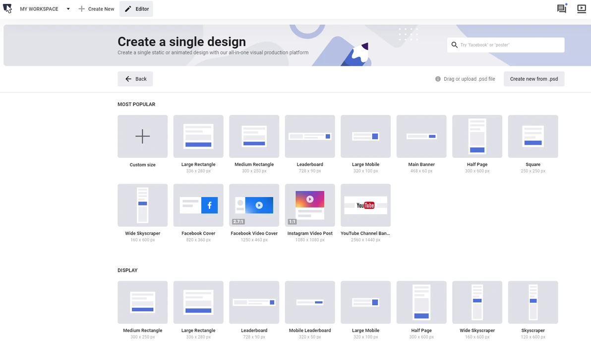 第四个工具: Bannersnack。可以创建几乎所有格式的内容,即便你需要创建视频,这里边也有模板给你。是一个非常良心的工具了。 有免费使用版本,高级功能需要付费。