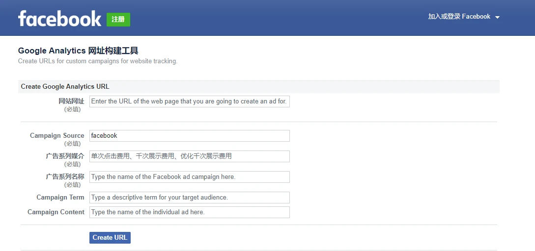 第八个工具: Facebook Url Builder。这是一个网址构建工具,用于追踪相关数据。 如果你查看整体网站数据,一般使用Google分析的话,那么这个工具可以让你更好处理数据。如果你并不适用Google分析,直接使用Facebook后台的数据分析工具亦可。