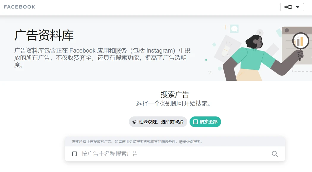 第一个工具:Facebook Ads Library。这是一个完全免费的可以查看到你的对手在投什么广告的工具。 在页面内输入你的竞争对手的主页名称就可以看到所有在投的广告,和过去的历史情况。