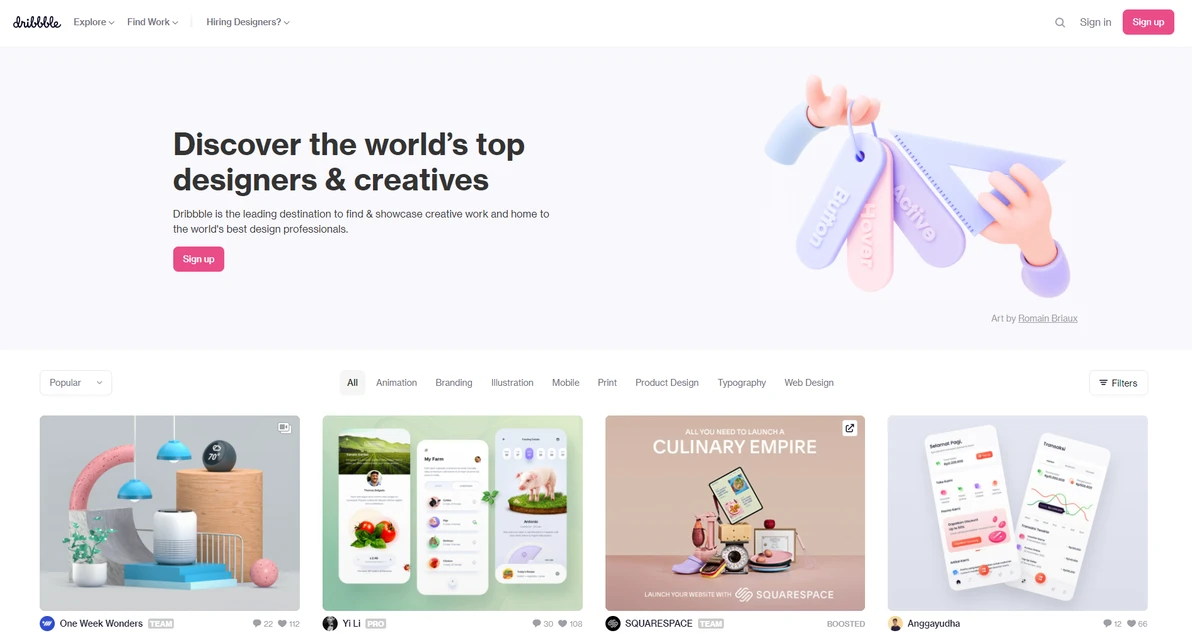 第五个工具: dribbble。一个网站参照的网站。 如果你已经做好了广告,你需要一个漂亮的落地页参考,你可以到这里来找到你想要的东西。