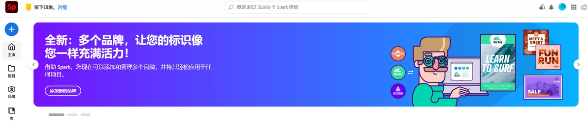 第三个工具: Adobe Spark。当你了解了广告一般的情况之后,你需要制作广告 而Adobe Spark可以提供一些设计的模板给你,让你快速上手制作多个用于测试广告页面,这可以说是非常良心了。而且不需要担心你的尺寸问题。而且这个工具免费版本就已经足够使用。