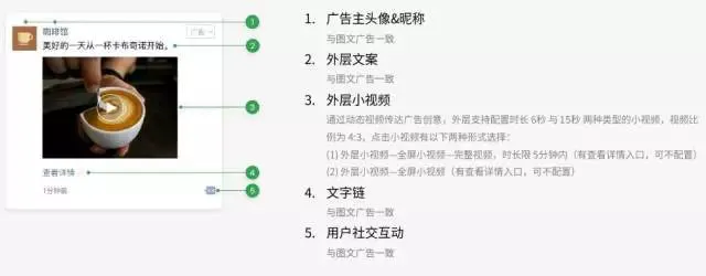 目前朋友圈广告的展现形式,主要为图文广告和视频广告两种,CPM视频比图文收费高。