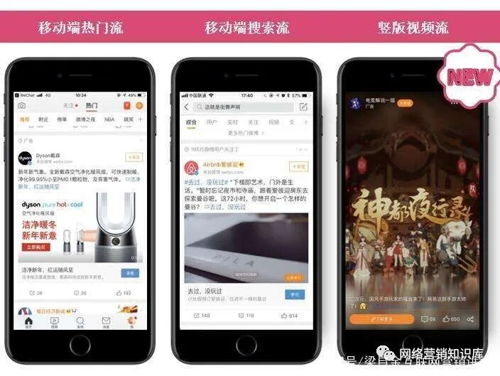 吃瓜群众的聚集地,粉丝群体活跃,偏年轻化,女性用户居多。根据用户属性和社交关系将信息精准的投放给目标人群,同时微博“粉丝通”也具有普通微博的全部功能,如转发、评论、收藏、赞等,可实现广告的二次传播,是很实用的营销工具。博文推广(单图+多图+九宫格)、应用推广、账号推广、视频推广。