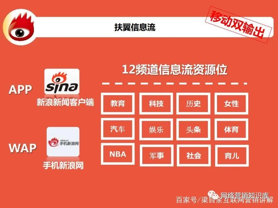 新浪用户男性偏多,年龄偏大,受教育程度总体偏高。主要包括广告交易平台SAX和广告投放平台扶翼。可投放股票、金融、游戏、汽车、男性养生等。