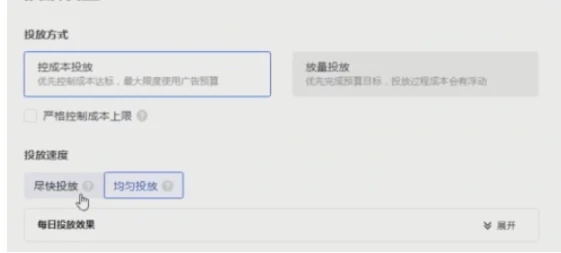 然后下面会有一个【投放速度】的选择,一般选择“尽快投放”即可。