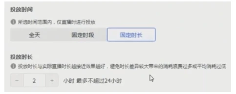 【固定时长】:就是定好时间,只投一场直播