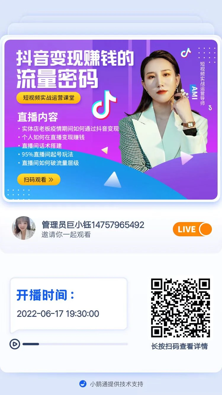 6月17号明晚上19:30 想学习抖音直播带货的 可以关注下明晚准时进入直播间学习 手把手带你操作