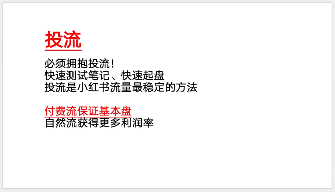 现必须拥抱小红书投流,投流可以快速测试笔记,流量起盘,目前小红书投流能保证流量的基本盘。
