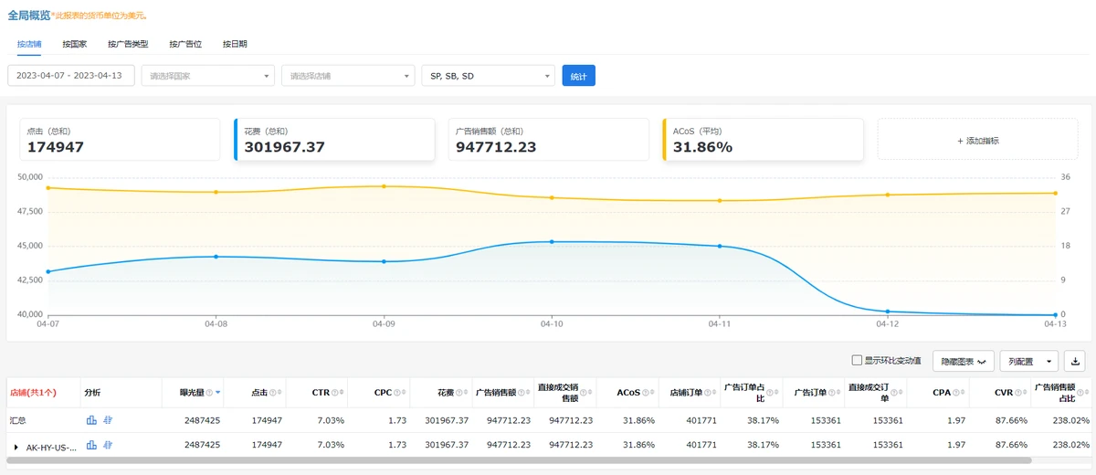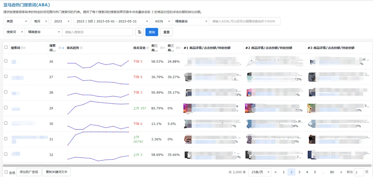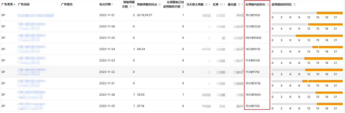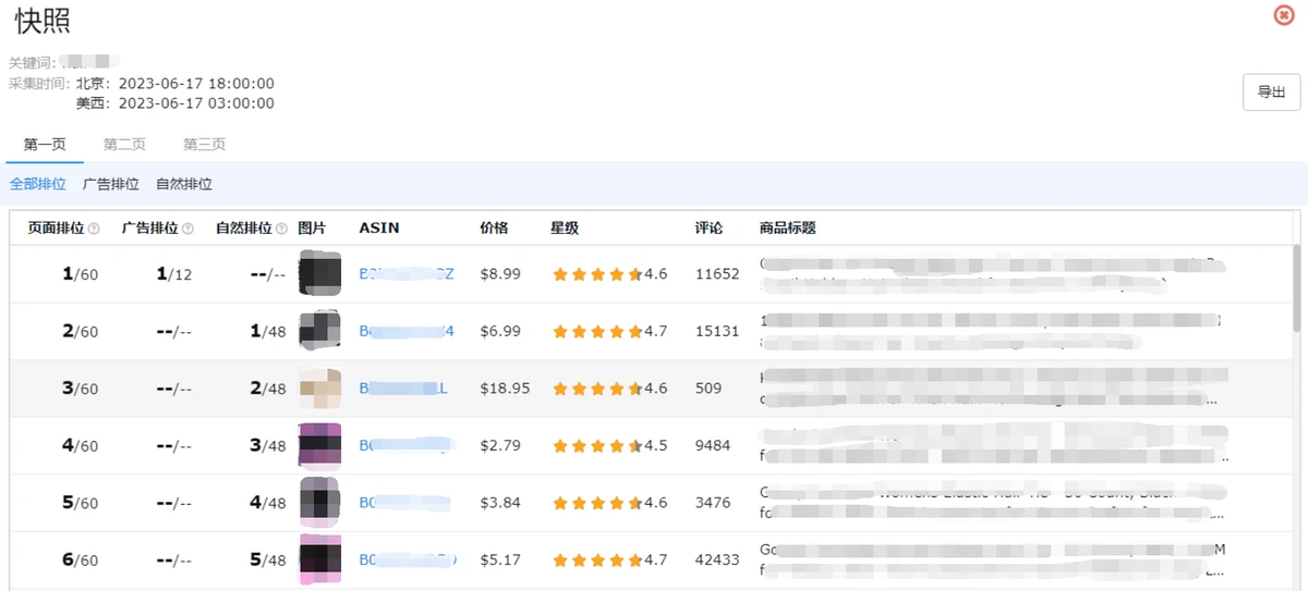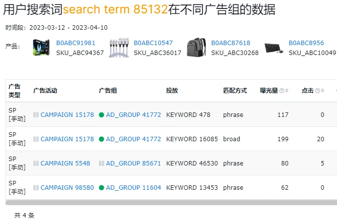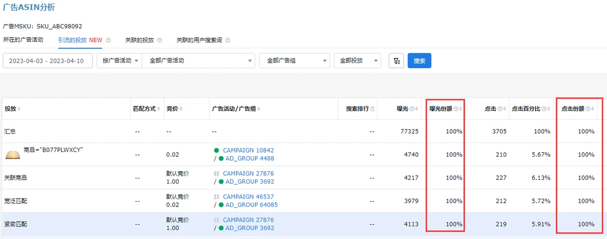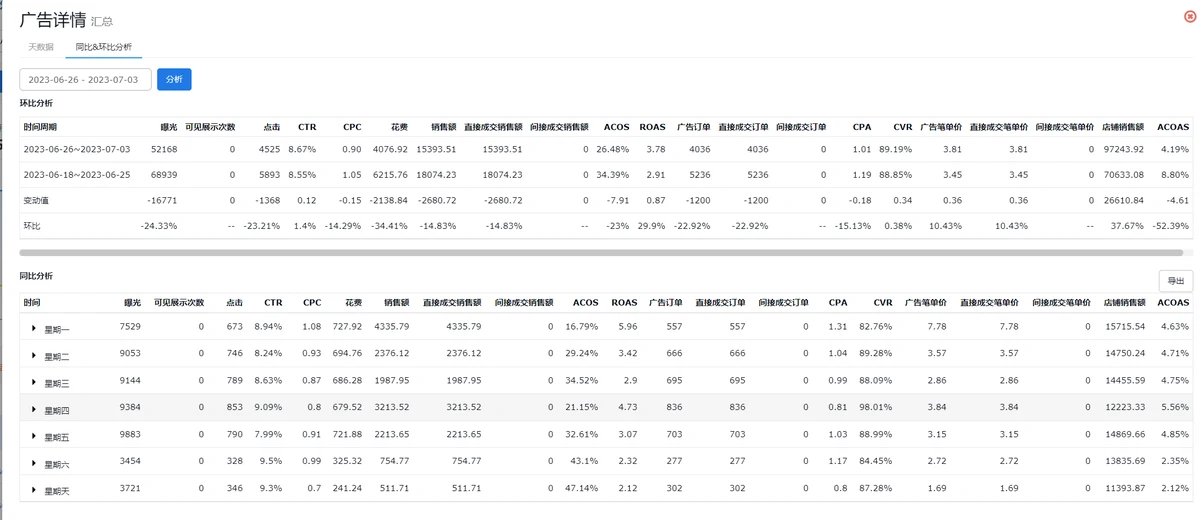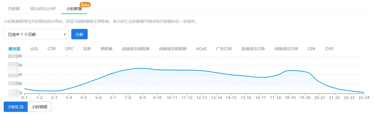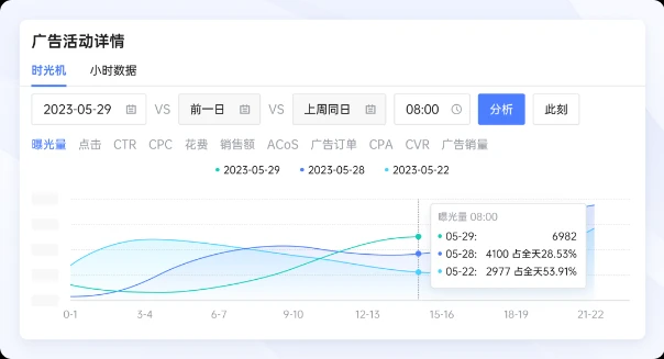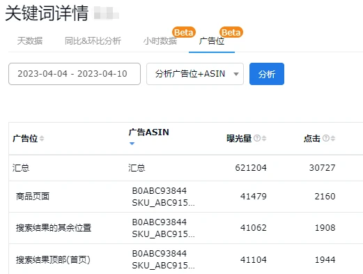 关键词的广告位、广告ASIN的流量来源、基于时刻的数据对比