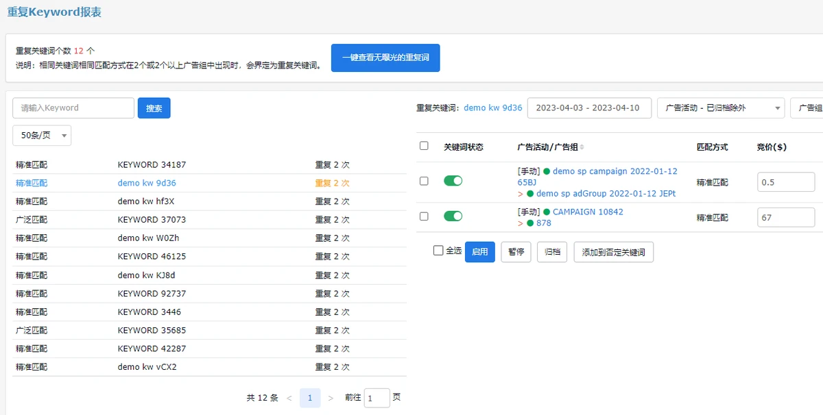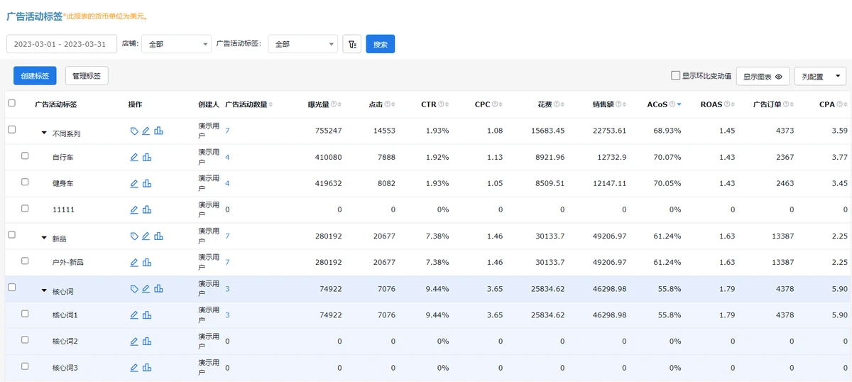 如何用领星ERP广告功能? 设置规则,每天将指定的、最近14天广告花费占比(ACoAS,是商品的广告花费/商品的店铺销售额)过高的广告商品,及时暂停,再人工介入判断是否重新启动; 对重点关键词,可进行抢位,通过调整竞价的方式抢占搜索结果前3页的指定位置;在抢位的工具中,领星ERP已经支持将前台的广告位和后台的广告组做精准的对应,避免相同的关键词和广告商品在不同广告组中同时投放引起广告位的判断不准等差异; 同时再结合重复关键词报告,统计重复投放的关键词,对比汇总,分析同一关键词在不同投放策略中的表现;一、投前规划