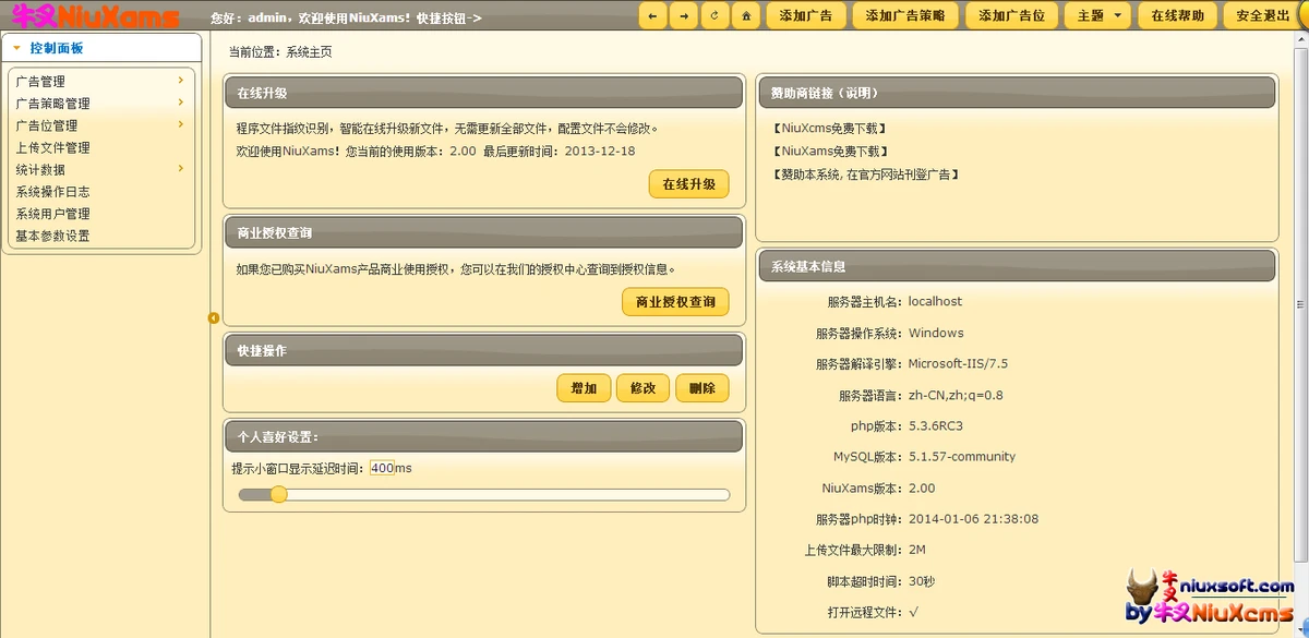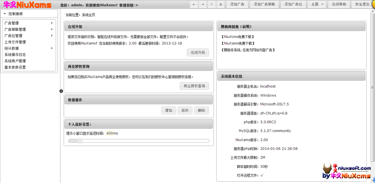 牛叉广告管理优化大师NiuXams是一款专门为广大站长打造的一款专业网站广告管理系统工具,它能够帮助用户快速低成本建立自己网站的广告管理、智能投放系统,通过网站广告为你带来更大的收益。