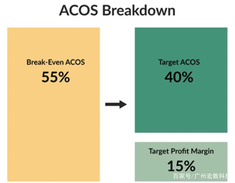 (以55%收支平衡ACoS为例,40%为目标ACoS,15%为目标利润率)