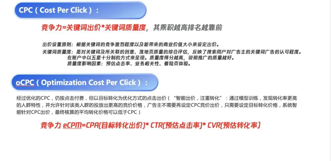 3、搜索广告按点击收费,按CPC和oCPC进行出价