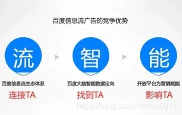 而展现样式也非常多,有纯文字类型,单张小图加介绍,或者动态的短视频。百度信息流生态体系,连接人与内容端-人群的内容优势。创新的定制、创意平台、开放式APl,为营销赋能一站式创意平台批量组合创意功能客户端+开放API平台定制化创新能力。