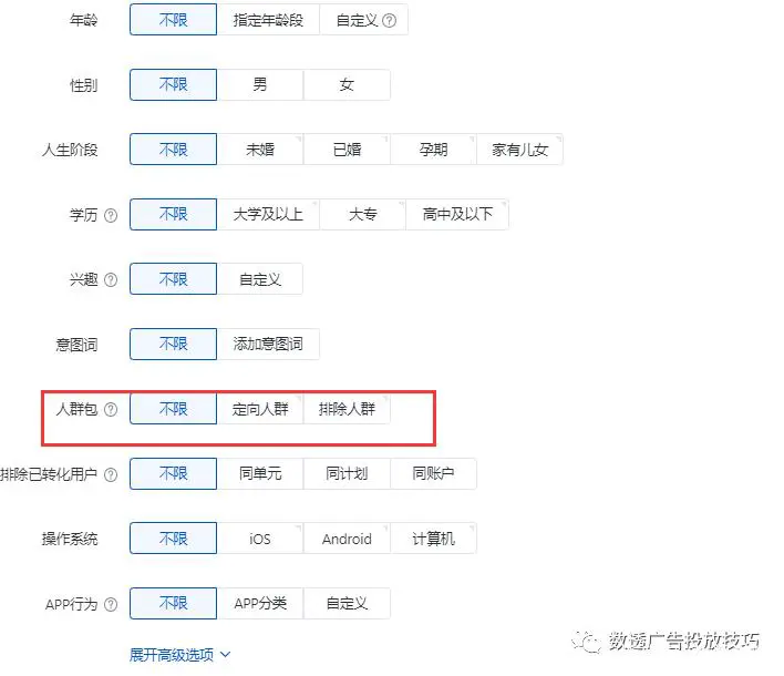 关于人群包这块的内容,相对复杂一点,如果细写下来内容会非常长,本篇就不再赘述了。后期会专门拿出一篇文章为您讲解观星盘的人群包。