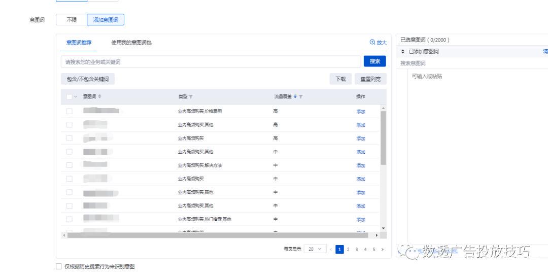 选取意图词。我们把握3个原则就好。一是相关,词越相关越好,不要选一些非相关词;二是高搜索量,信息流的首要数据指标是展现,高搜索量才能有高展现;三是偏精准词,可以把大搜有转化的词加过来。如果没有投大搜,则根据自己的经验,选取一批比较核心的词。