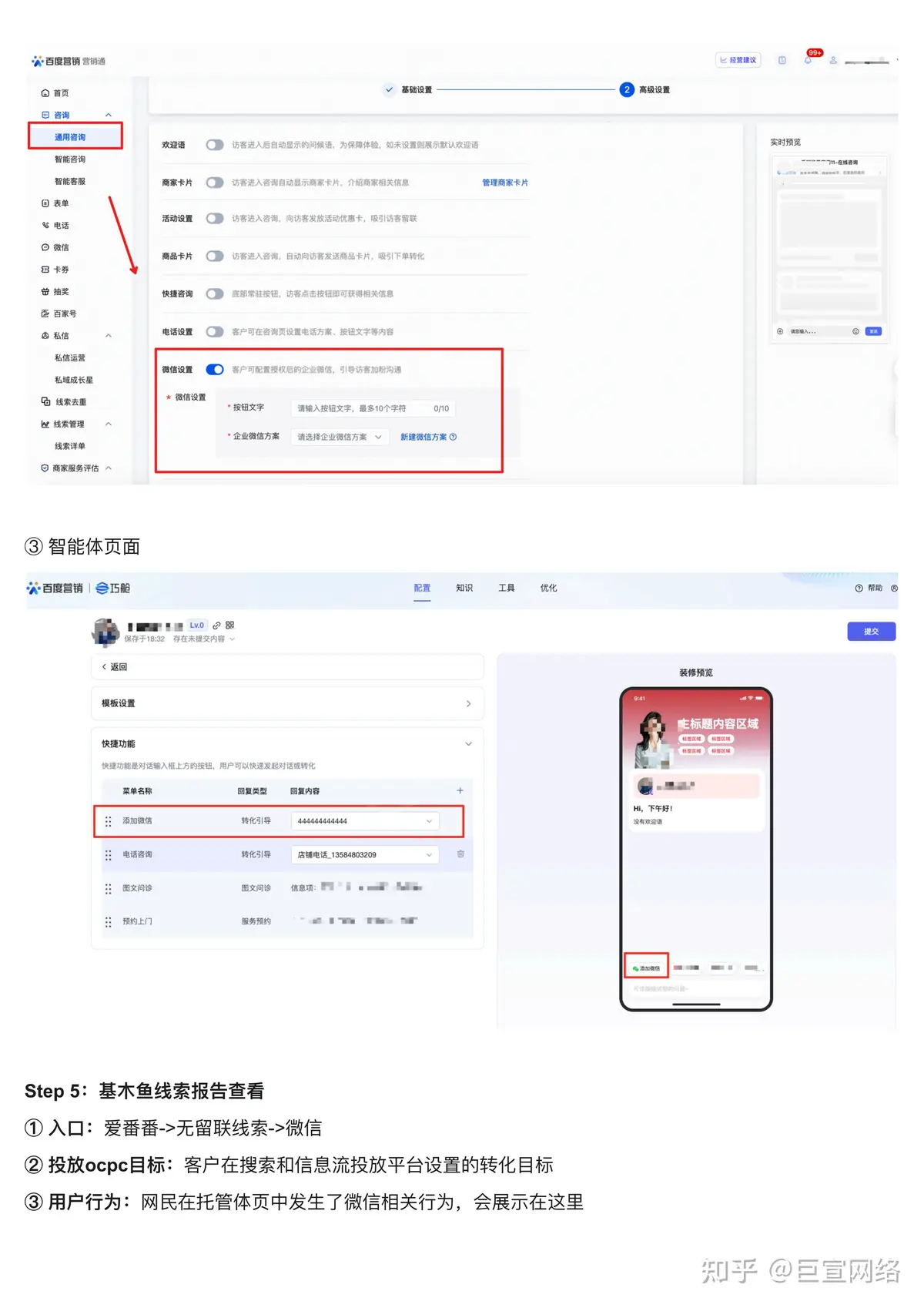 以上是对百度广告平台基木鱼的介绍,广告主可以通过在基木鱼开户投放广告实现提效增量的效果,如果您对这方面还不太了解可以咨询我们巨宣网络,我们专门做百度广告投放运营很多年、值得您的信任,您可以完全放心,任何问题都可以随问随答,联系电话:15527649518~