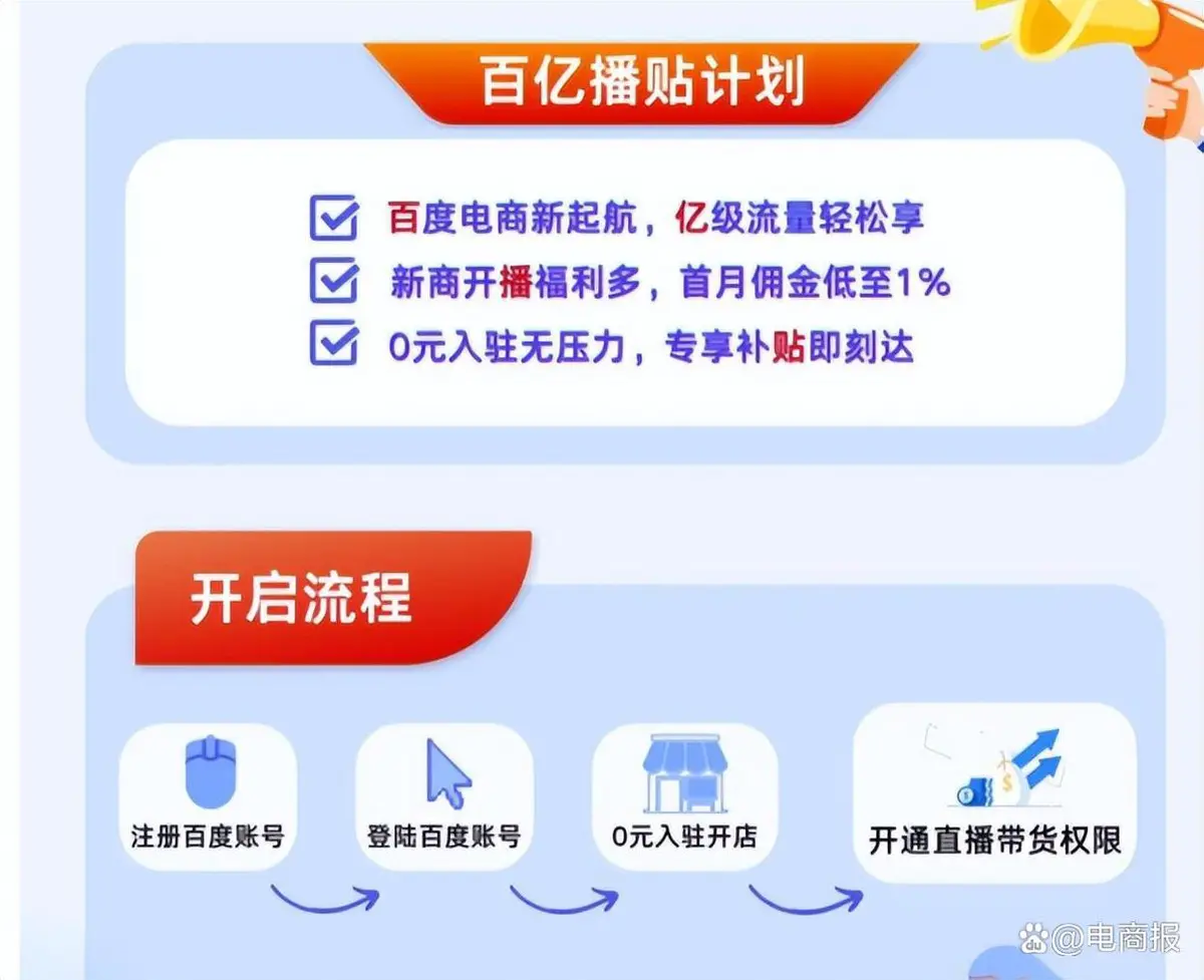 从招商政策来看,为了吸引商家入驻,建设直播电商的生态,百度可谓是诚意满满。