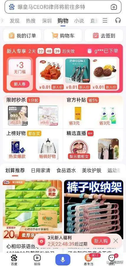 也是在这年的双11前夕,百度在移动端APP中上线了购物频道。