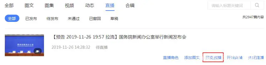 步骤:内容管理 — 找到对应直播 — 预览直播