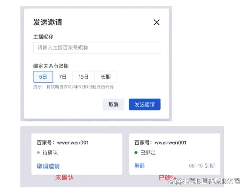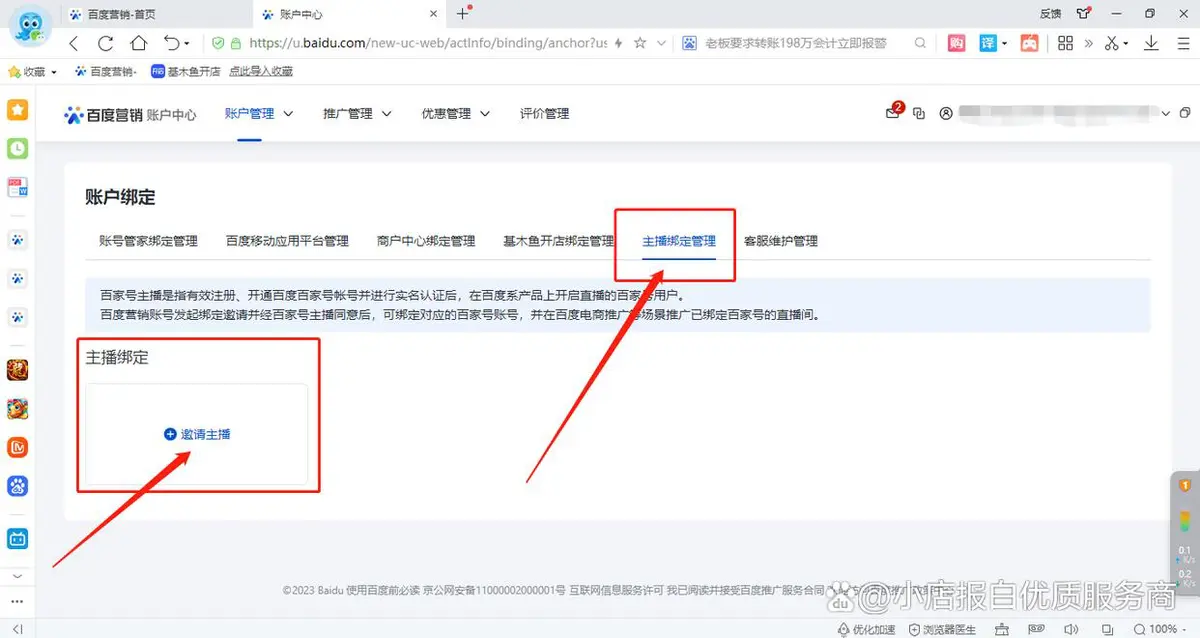 第三步:百度推流账户绑定主播百家号,打开账户中心,找到账户绑定,然后找到主播绑定管理,输入要绑定的主播百家号名字邀请绑定,然后进入百家号同意绑定即可,具体流程如下: