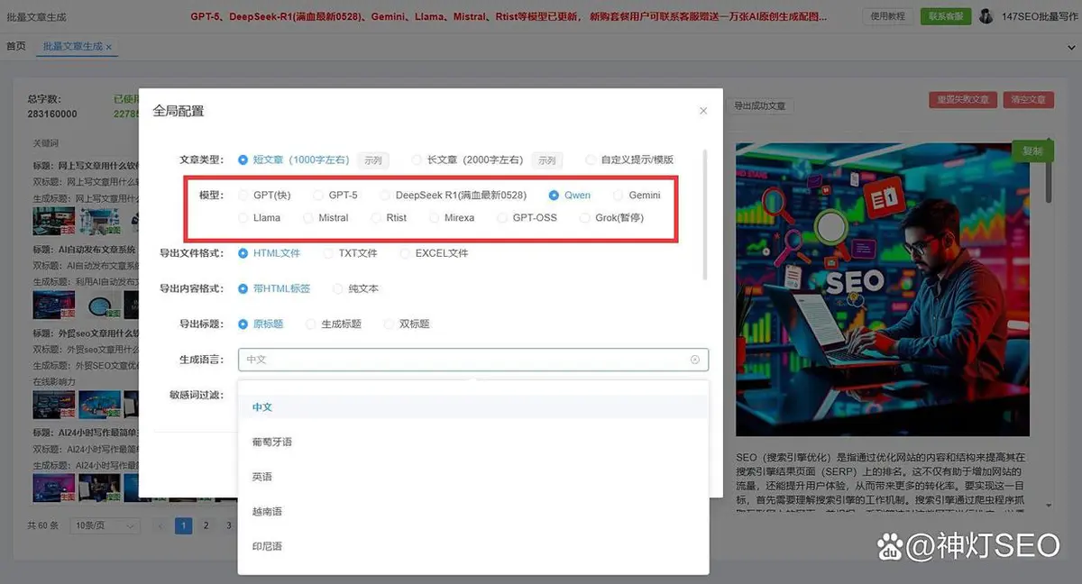 如果你们行业关键词量大,也并不是全部都要自己写,用AI批量写作是最快的,一个好的AI工具在seo之手,简直如虎添翼,我用过不下30个AI批量写作模型,最后才选择了当下最火的几个模型做成产品。
