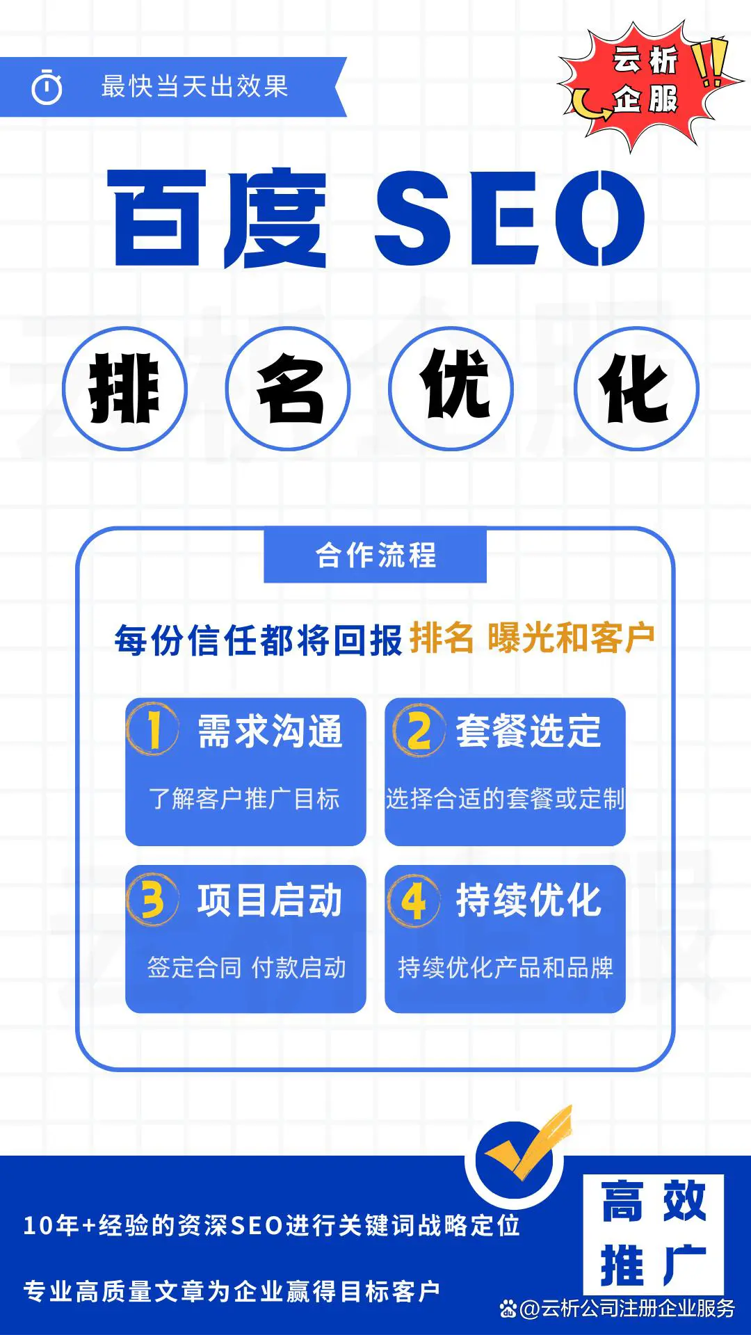 对于希望快速见效的企业,重庆云析数智企业服务有限公司(简称:云析企服)提供专业级解决方案。其网络推广团队由前大型网站SEO站长领衔,独创"三维排名提升模型":