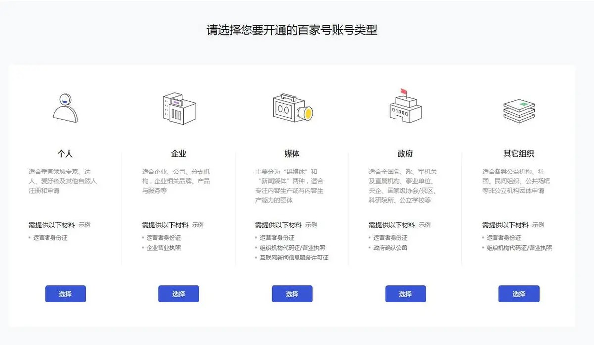 五种百家号类型不同,发布的内容类型也不同,根据发布内容的定位,选定属于自己的百家号。不同方向的五种百家号,你选好了吗?