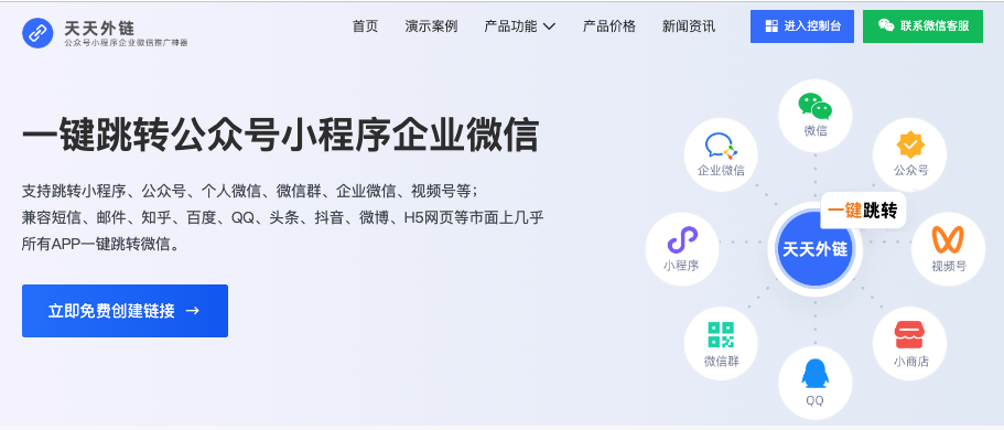 第一、点击上方链接,进入天天外链官网登录注册,点击“立即免费创建链接”