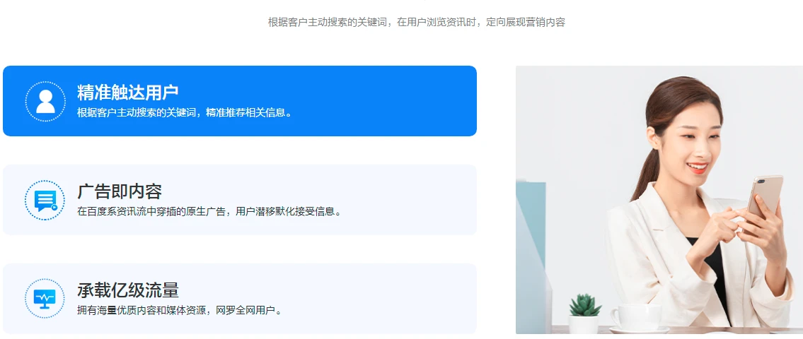 ,在搜索结果显著的位置优先展示您的推广信息,只有客户点击广告之后,您才需要付费。