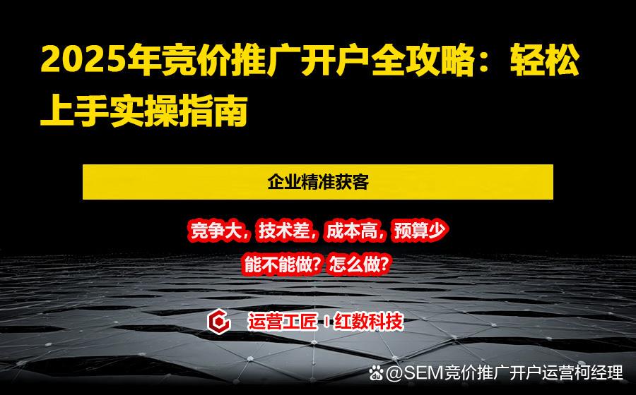 在数字化营销日益盛行的今天,竞价推广已成为众多企业获取流量、提升品牌知名度的重要手段。2025年,随着市场竞争的加剧和技术的不断更新,竞价推广开户也迎来了一系列新变化。本文将为您详细介绍竞价推广开户的全流程,包括平台选择、开户技巧、预算规划及投放效果提升等关键要点,助您轻松上手,实现数字营销的新突破。