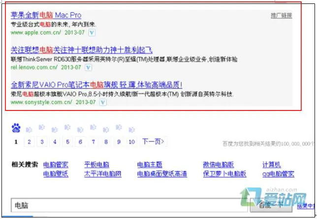 还是刚才的例子,我们在百度里搜索“电脑”,看到以下的链接: