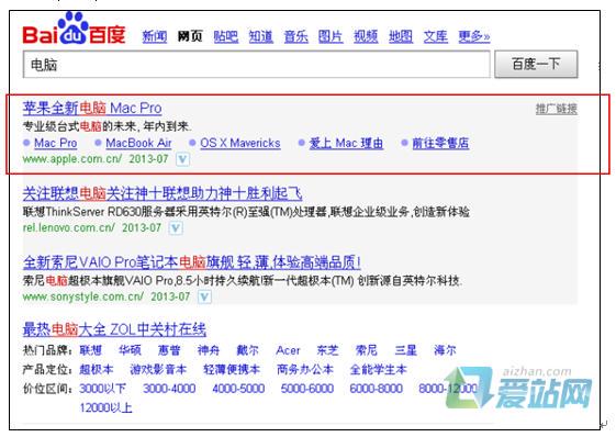 可以看出,只要是竞价的,都会带有“推广链接”的字样。