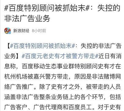 2020年9月29日,一则重磅消息刷屏网络,百度元老史有才被警方带走,原因是涉及了非法赌博网站的广告推广。